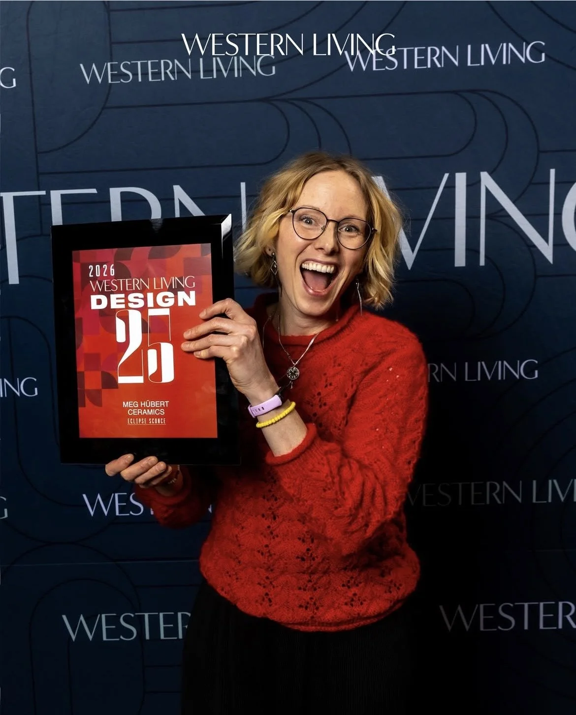 In 2026 Meg Hübert was awarded the Western Living Product Design 25 Award, as well as the Peoples Choice Awardfor her Eclipse Sconce. Check out full articles here, and here. You can also find out more about the award ceremony here. phot credit: Vision Event Photography.